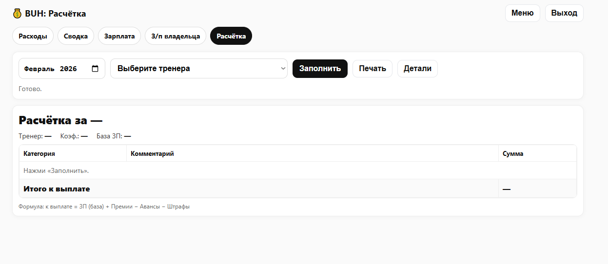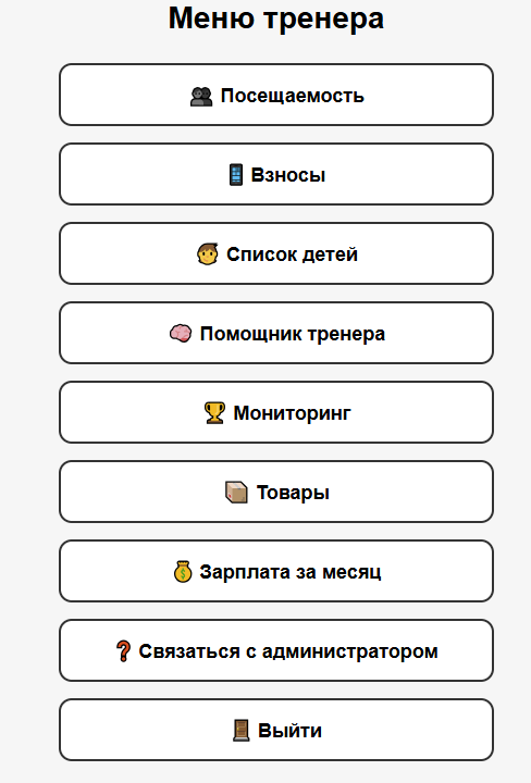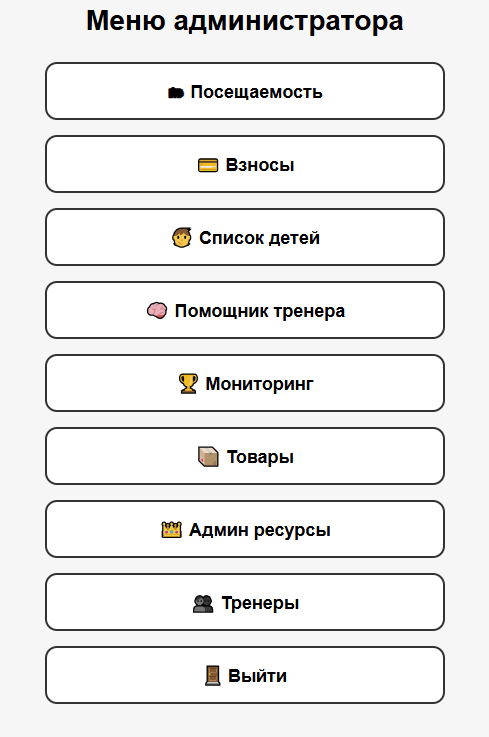 Роли: админ / тренер (ограничение доступа).